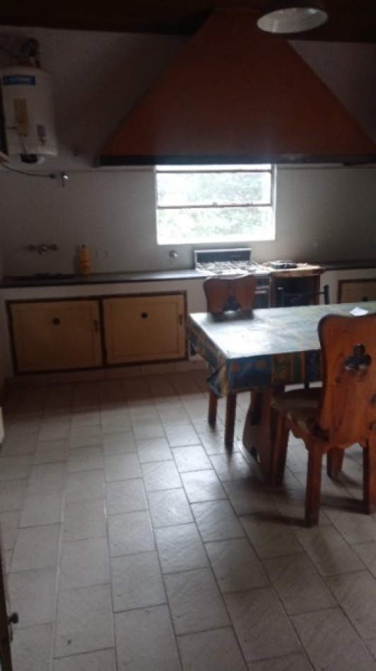Cocina comedor amplia, con alacenas, muebles bajo mesada y ventilación natural.