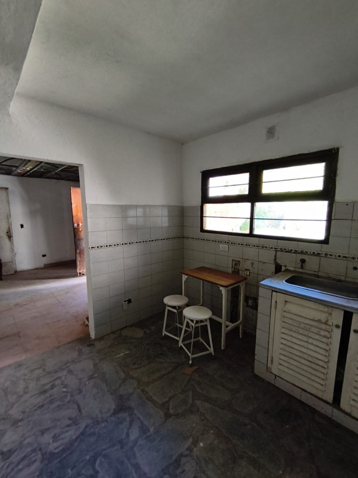 Al fondo del lote, construcción de dos plantas a terminar o refaccionar. En planta baja, cocina comedor con ventilación natural, living comedor y garage, u otro destino según las preferencias.
