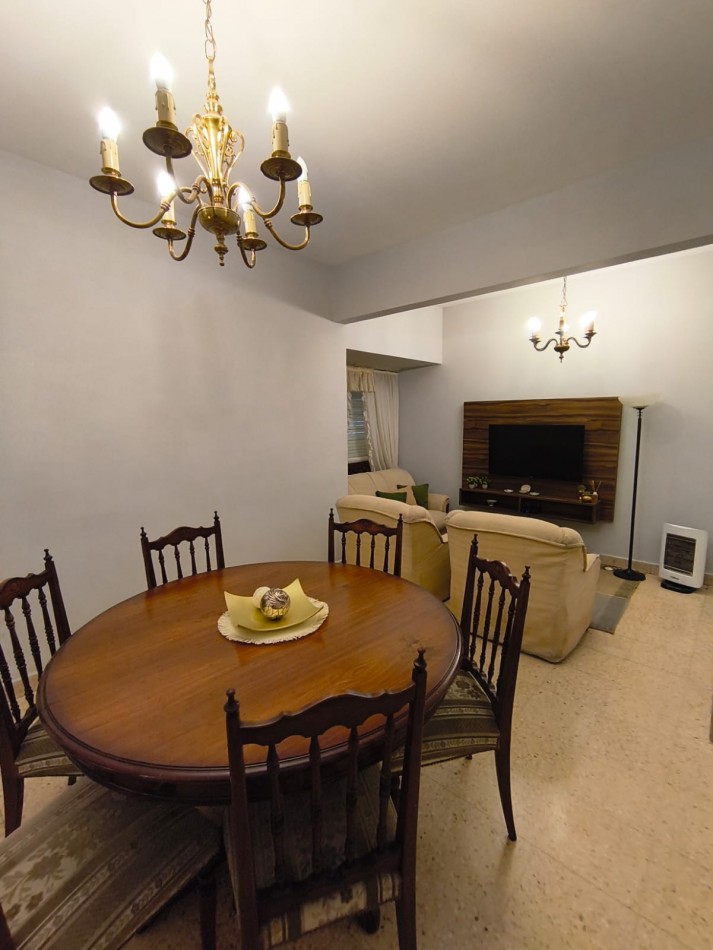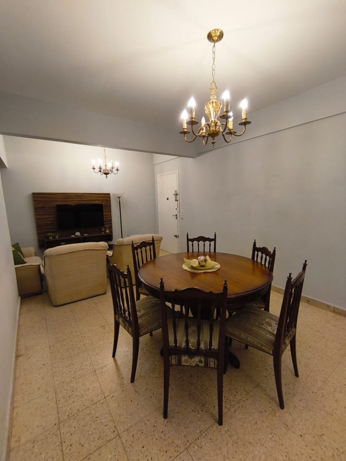Living comedor amplio con ventana hacia el pulmón del edificio.