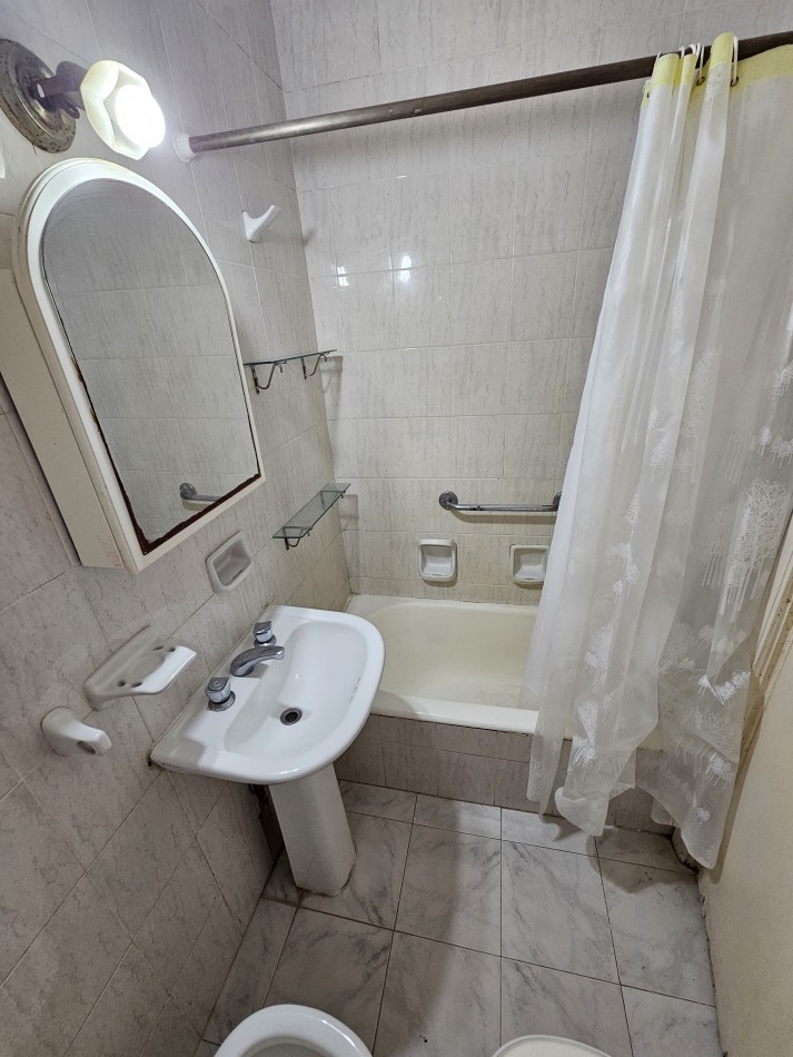Baño completo, con bañera, y totalmente revestido en cerámicos.
