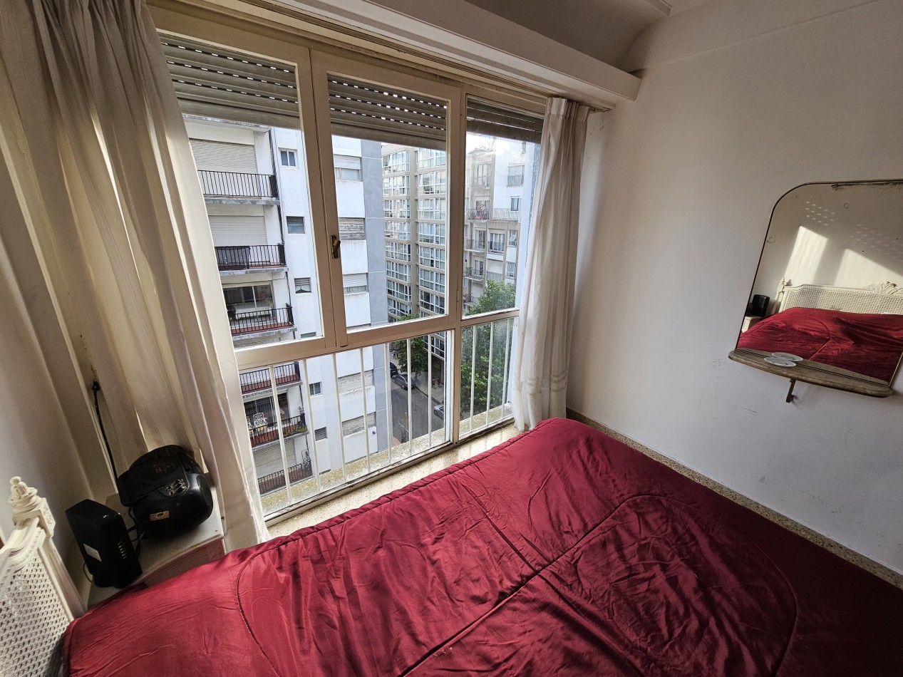 Sector de dormitorio con ventanal hacia el balcón francés a la calle y placard empotrado, con baulera.