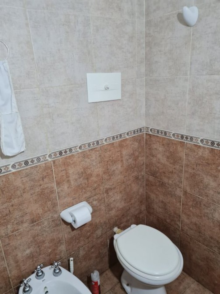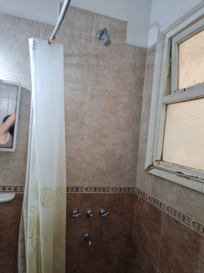 Baño completo, revestido en cerámicos, con ventilación natural.
