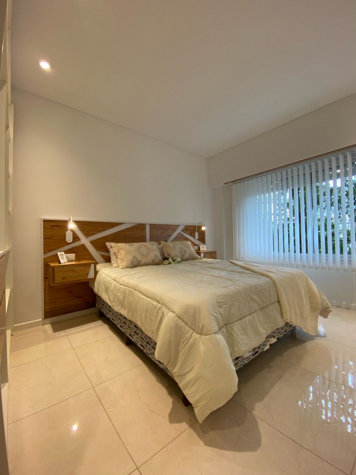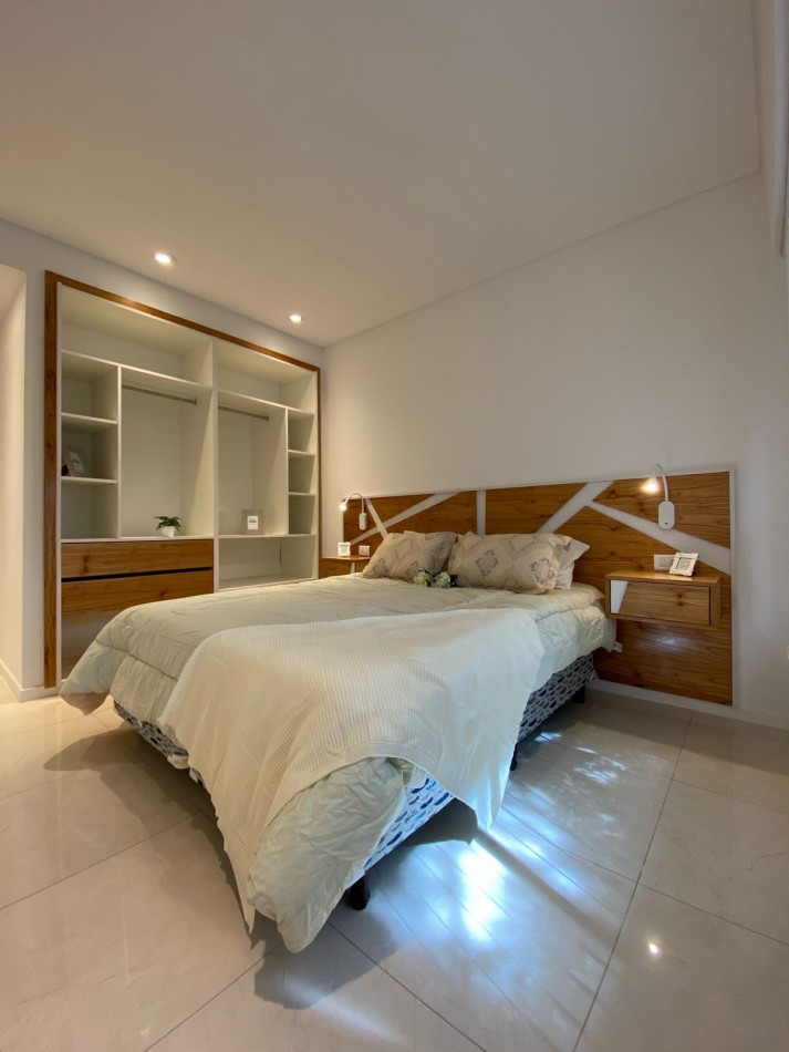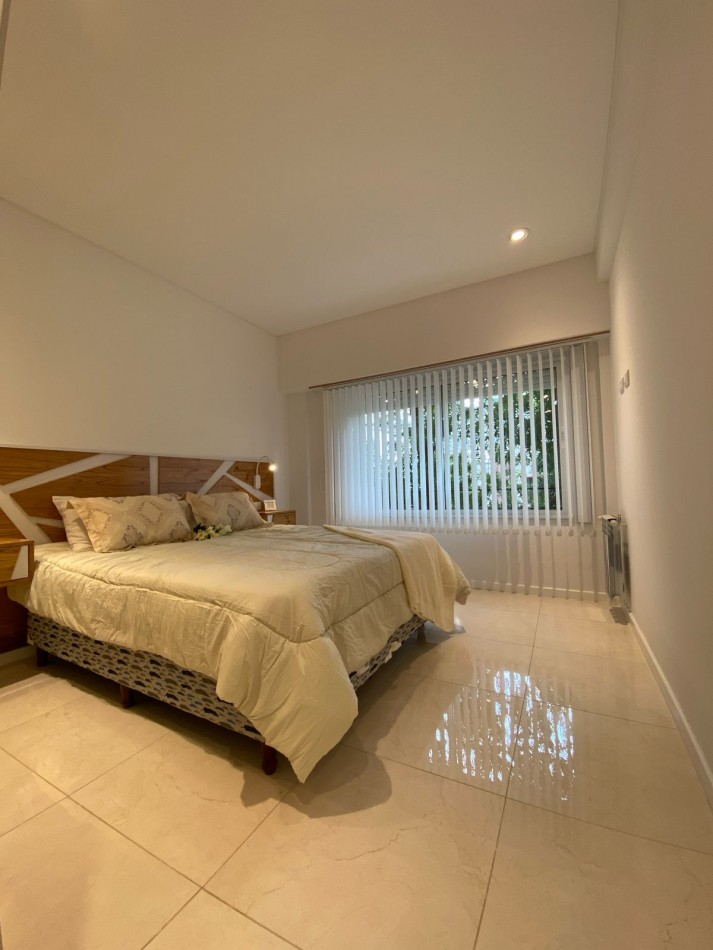Dormitorio principal al frente, con piso de porcelanatos, placard empotrado con interiores a medida y puertas corredizas. Baño en suite, con pediluvio y mampara de vidrio.