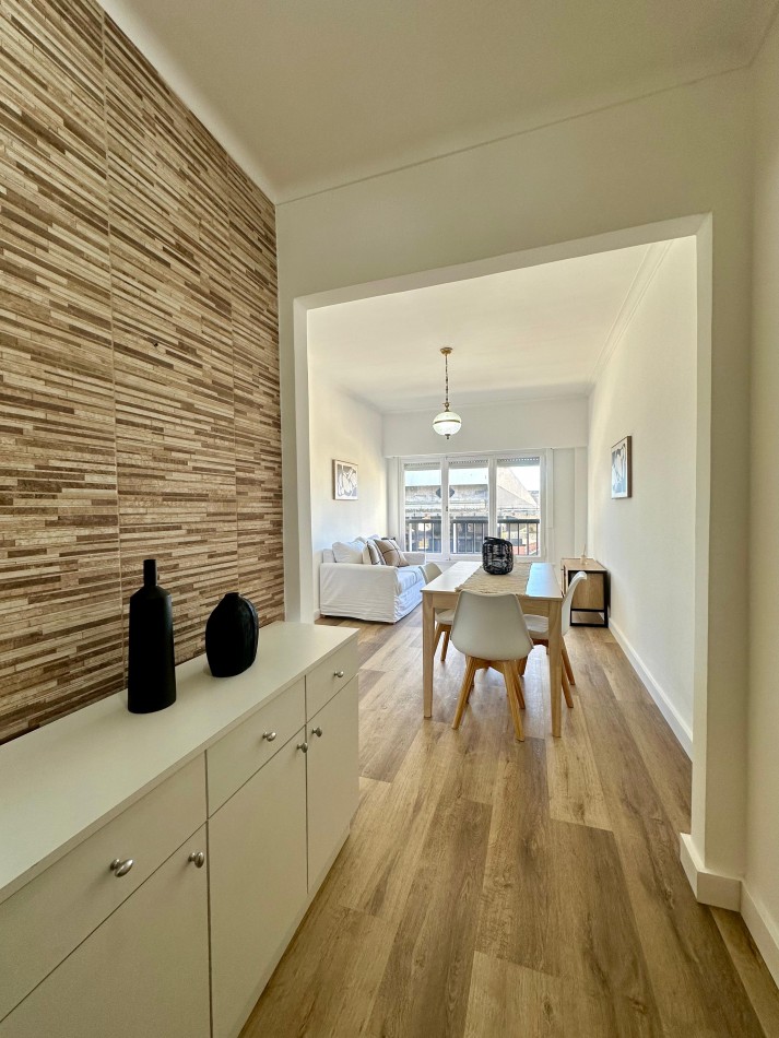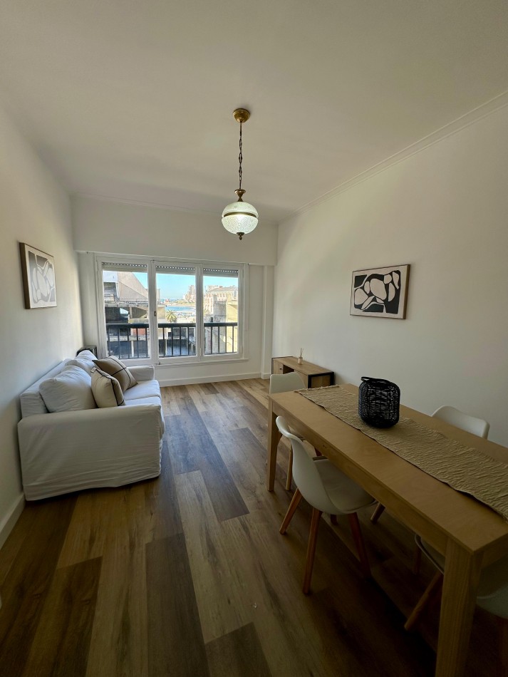 Living comedor con piso de PVC alto tránsito, calefactor tiro balanceado y amplio ventanal con balcón francés.
