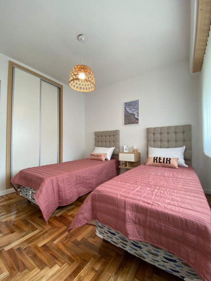 Segundo dormitorio al contrafrente, con piso de parquet plastificado y placard empotrado con interiores a medida y puertas corredizas.