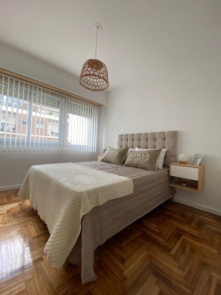 Dormitorio principal al frente, con piso de parquet plastificado y placard a medida.