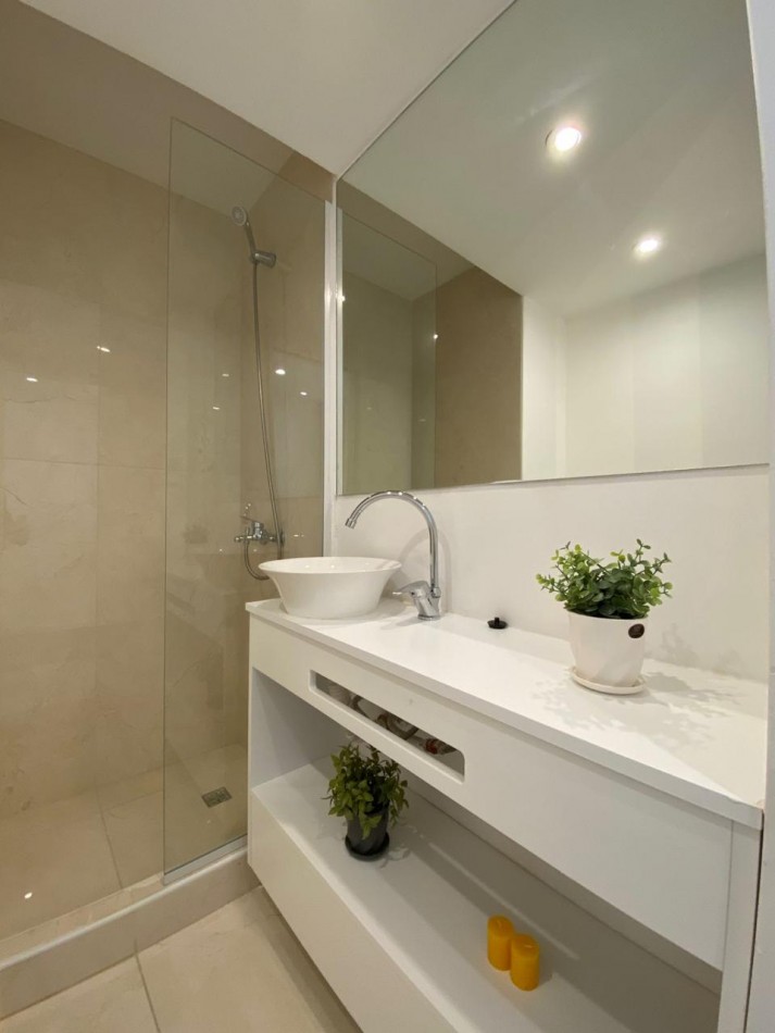 Dos baños completos, con pediluvio y mampara de vidrio.