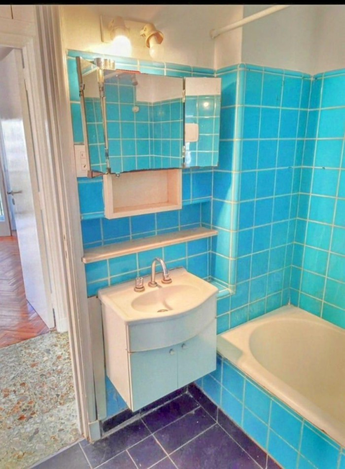 Baño principal completo, con bañera, en excelente estado original.