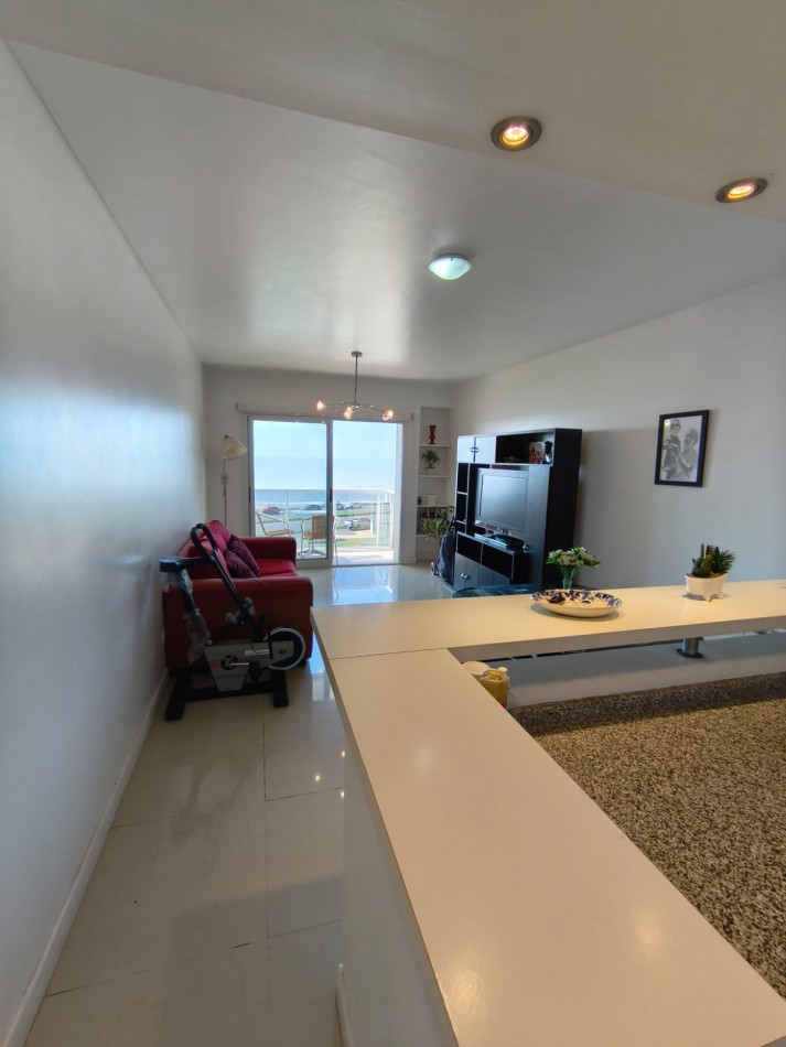 Living comedor muy luminoso, con amplio ventanal con salida al balcón y hermosa vista abierta al mar.